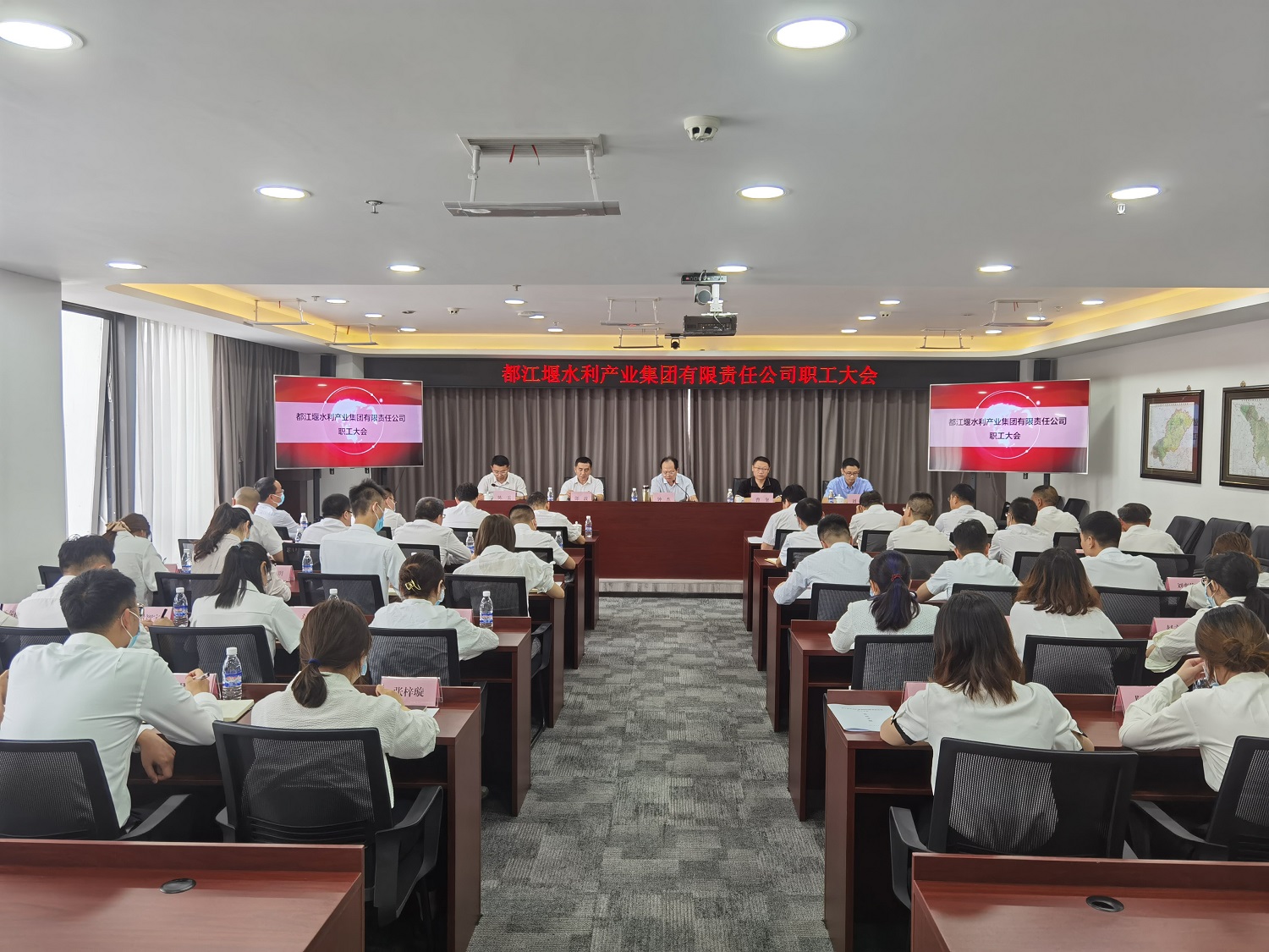 2021年9月7日,都江堰水利產(chǎn)業(yè)集團(tuán)有限責(zé)任公司在公司總部召開(kāi)職工大會(huì)。省水發(fā)集團(tuán)黨委書(shū)記、董事長(zhǎng)兼產(chǎn)業(yè)公司黨委書(shū)記、董事長(zhǎng)鐘杰,省水發(fā)集團(tuán)組織人力資源部部長(zhǎng)曹奎,省水發(fā)集團(tuán)經(jīng)營(yíng)管理部部長(zhǎng)劉華出席大會(huì)。