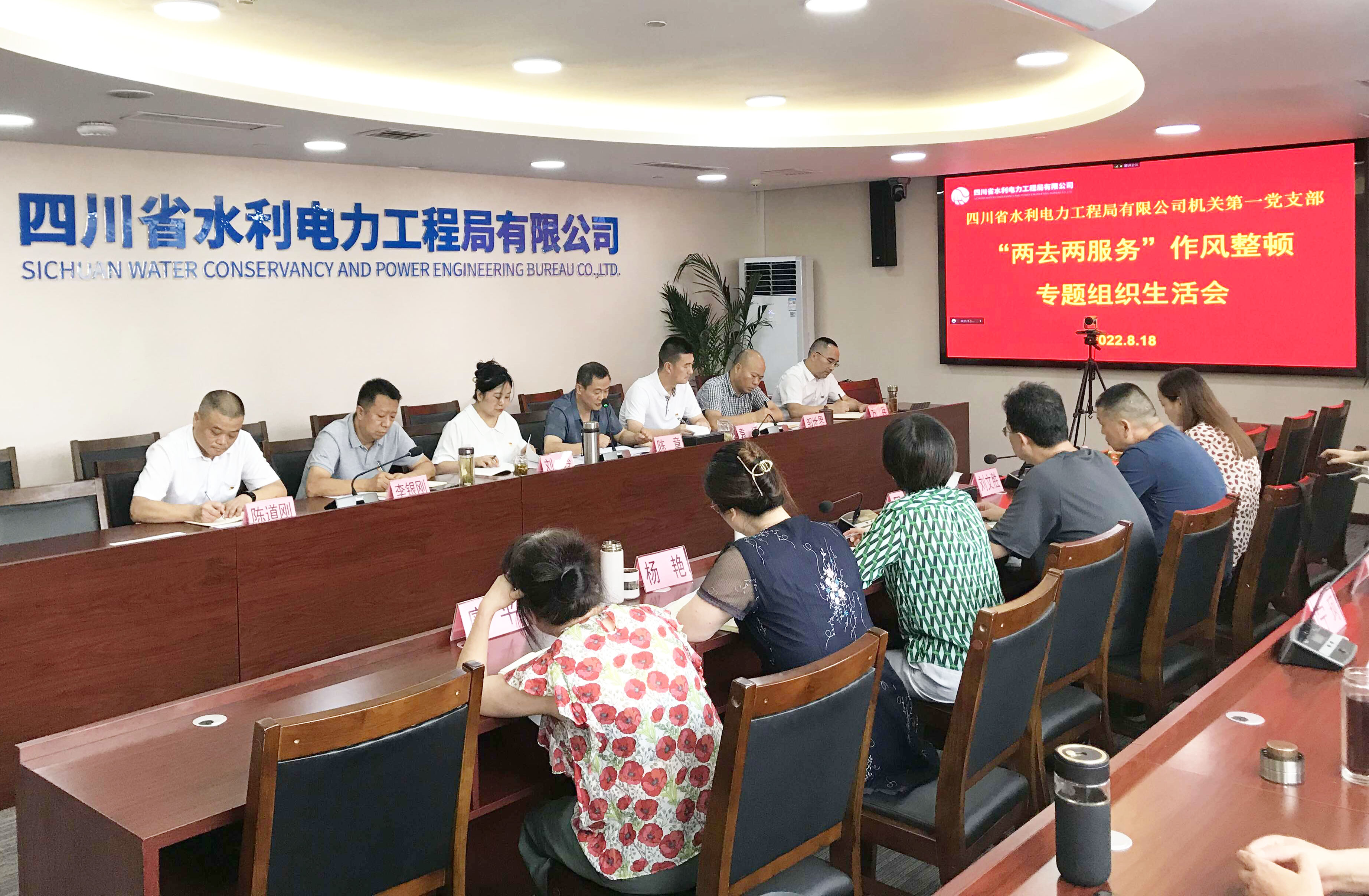 8月18日下午,工程局公司機關(guān)第一黨支部在公司總部大會議室召開“兩去兩服務”作風整頓轉(zhuǎn)入“抓整改重鞏固看成效”階段專題組織生活會。資陽辦公區(qū)以視頻形式參加。會議由支部書記陳章主持,支部全體黨員及支部涵蓋部門非黨員職工參加會議。