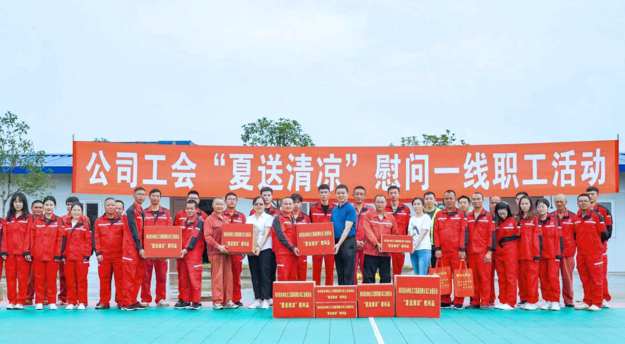 8月5日,公司黨委委員、職工董事、工會(huì)主席夏永紅,紀(jì)委委員、工會(huì)副主席付麟麗,工會(huì)辦公室主任秦利一行到青神虎渡溪航電樞紐工程項(xiàng)目開展“夏送清涼”慰問及工作調(diào)研,為一線職工送上防暑降溫物品,帶來(lái)組織的關(guān)懷。
