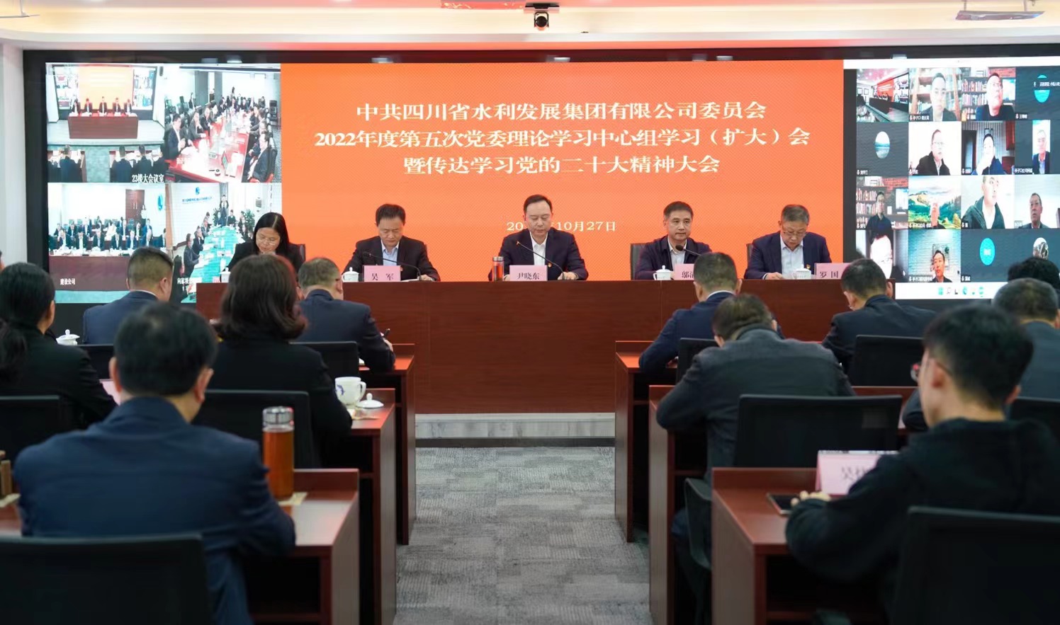 10月27日,集團召開2022年度第五次黨委理論學習中心組(擴大)會議暨傳達學習黨的二十大精神大會,專題學習傳達黨的二十大報告精神、習近平總書記在參加黨的二十大廣西代表團討論時的重要講話精神、習近平總書記在黨的二十大閉幕會上的重要講話精神、習近平總書記在二十屆中共中央政治局常委同中外記者見面時的重要講話精神,關于十九屆中央紀律檢查委員會工作報告的決議、關于《中國共產(chǎn)黨章程(修正案)》的決議,以及四川省傳達學習黨的二十大精神大會精神、水利廳傳達學習黨的二十大精神大會精神。集團黨委副書記、董事、副總經(jīng)理、總會計師尹曉東主持會議并對傳達學習黨的二十大精神進行了安排部署。會議集體觀看了《習近平的二十大時間》學習視頻,集團黨委委員、紀委書記吳軍領學了黨的二十大報告原文。