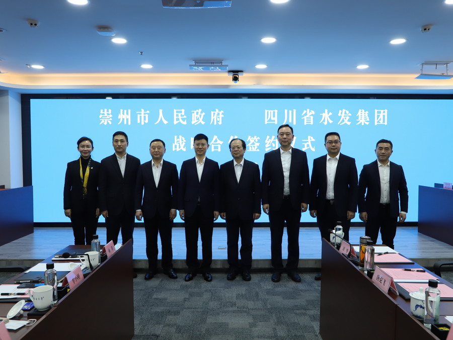 集團(tuán)領(lǐng)導(dǎo)尹曉東、水發(fā)投資公司領(lǐng)導(dǎo)郎波,崇州市領(lǐng)導(dǎo)毛向陽、王峰、張萍、張曉林參加了簽約儀式。