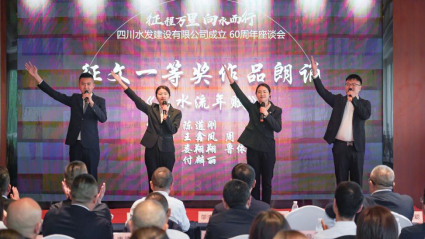 會上,發(fā)布了建設(shè)公司60周年大事記《征程》、畫冊《向水而行》,并對建設(shè)公司企業(yè)文化品牌進(jìn)行釋義,播放企業(yè)宣傳片《水利鐵軍 匠筑不凡》,觀看了舞蹈《筑夢》視頻。同時,為建設(shè)公司成立 60 周年主題征文和書畫攝影比賽活動優(yōu)秀組織獎獲獎單位及一等獎獲得者頒發(fā)證書,并對詩歌類一等獎?wù)魑淖髌愤M(jìn)行了朗誦。