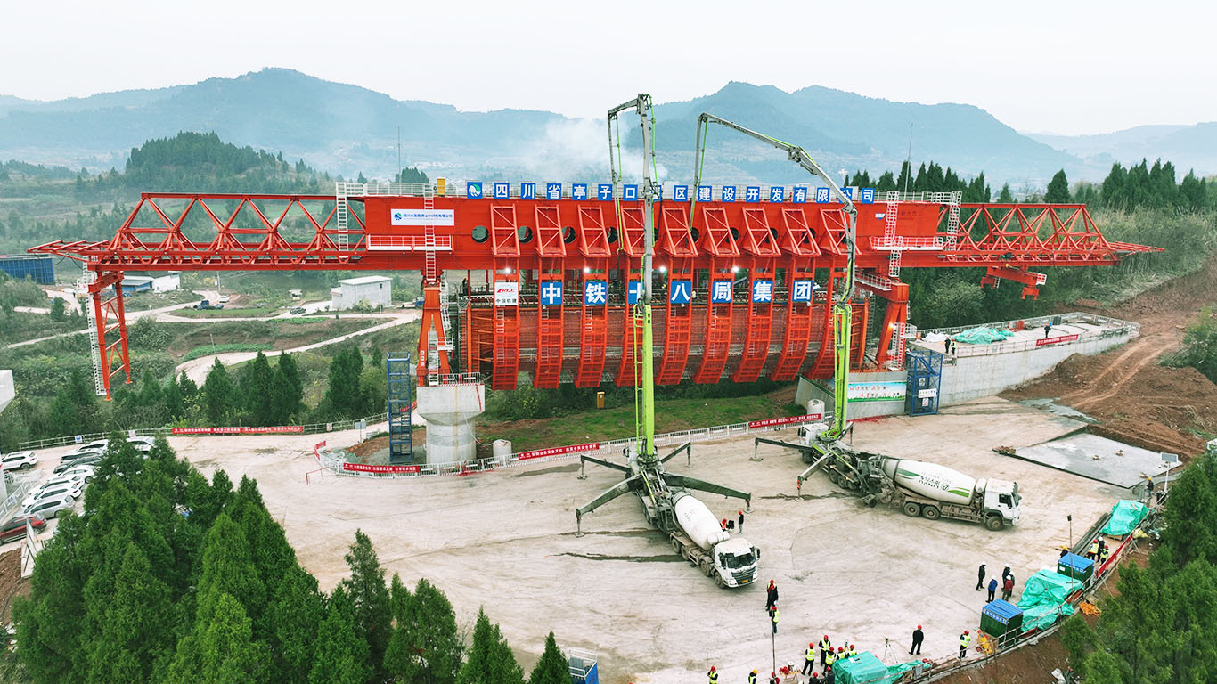 老吳壩渡槽為本標段控制性工程,是關(guān)鍵線路的重點項目。渡槽為全長1050米、25跨42米預(yù)應(yīng)力梁式結(jié)構(gòu)渡槽,現(xiàn)117根(2357.55米)樁基施工全部完成,累計完成承臺、板基和槽臺澆筑18個,正在澆筑墩身,累計完成374米。造槽機于今年10月完成組裝,第一跨槽身鋼筋綁扎已完成,現(xiàn)場渡槽的各項施工正在穩(wěn)步有序推進。下一步,項目部將繼續(xù)加快槽身施工及其他渡槽開工,鉚足干勁助力四川水利“三年上臺階”圓滿收官。