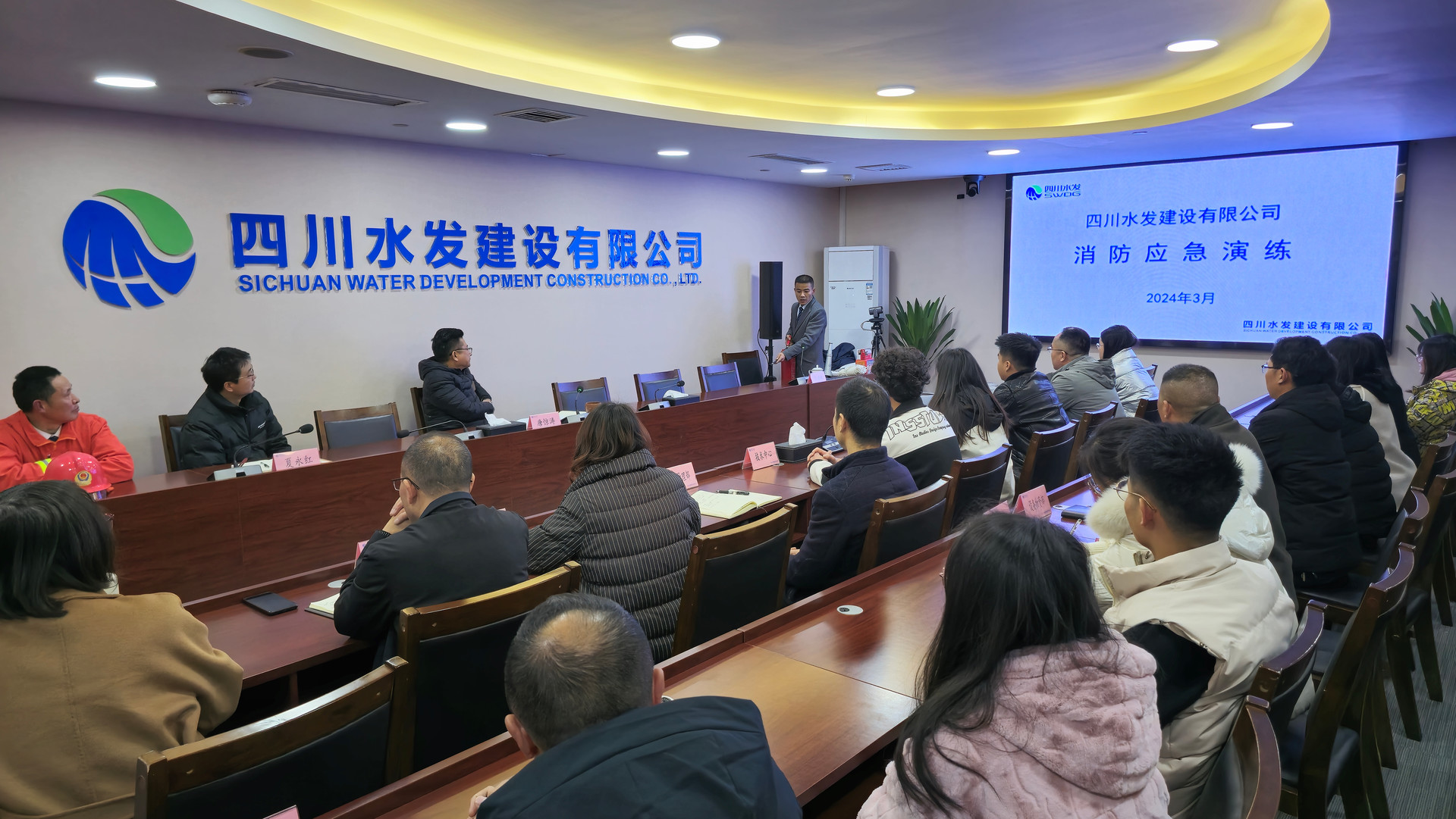 2024年3月1日下午,四川水發(fā)建設有限公司成都總部辦公區(qū)預設突現(xiàn)火情,現(xiàn)場指揮收到火災預警后立即宣布啟動火災疏散逃生應急預案并報告總指揮,同時指揮應急疏散引導員立刻到達指定位置疏通安全通道,而后協(xié)同各方以迅速引導辦公區(qū)所有人員撤離的指定安全位置,完成了本次火災疏散逃生演練。