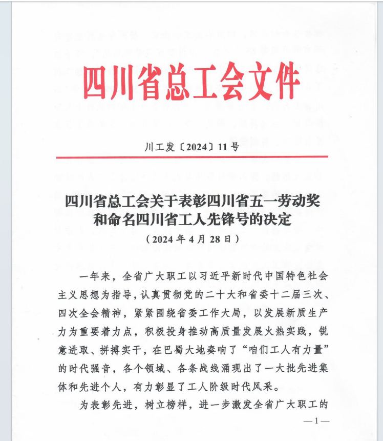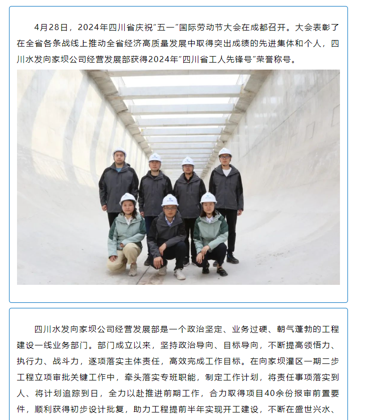 喜報(bào)!向家壩公司經(jīng)營發(fā)展部獲得2024年“四川省工人先鋒號”榮譽(yù)稱號