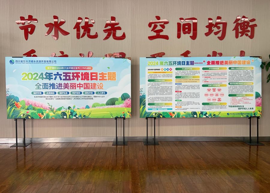 在召開專題會議的同時,引大濟岷公司還制作了宣傳展版、張貼宣傳畫報,利用電子屏滾動播放生態(tài)環(huán)境宣傳標(biāo)語。