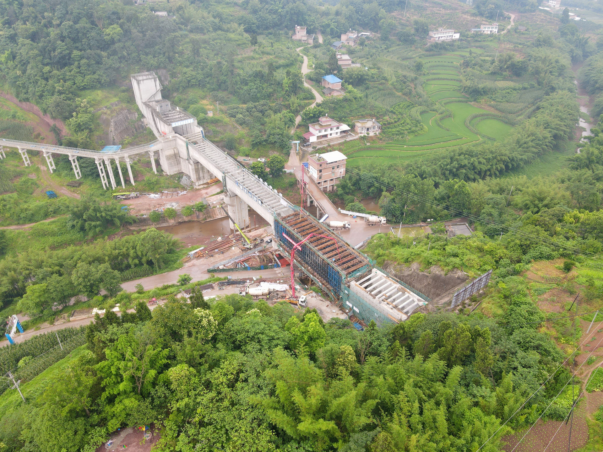 圓包山渡槽澆筑最后一跨航拍圖