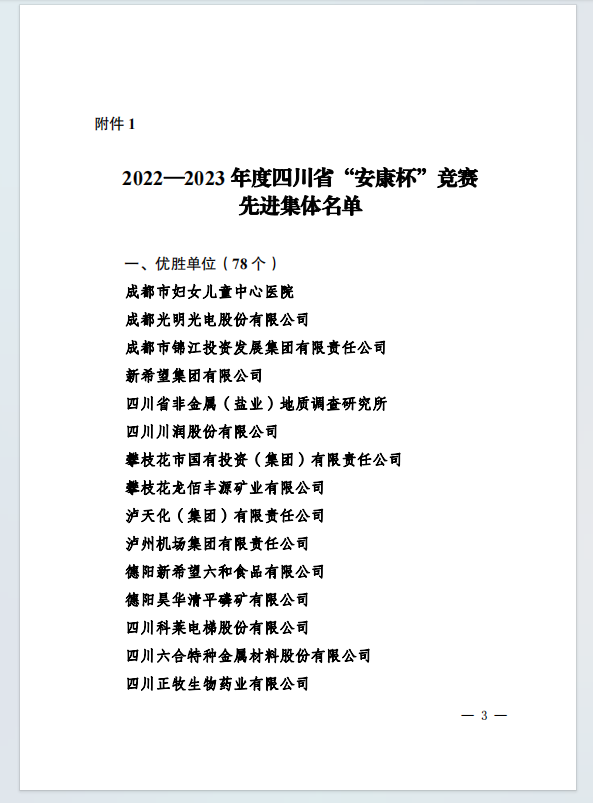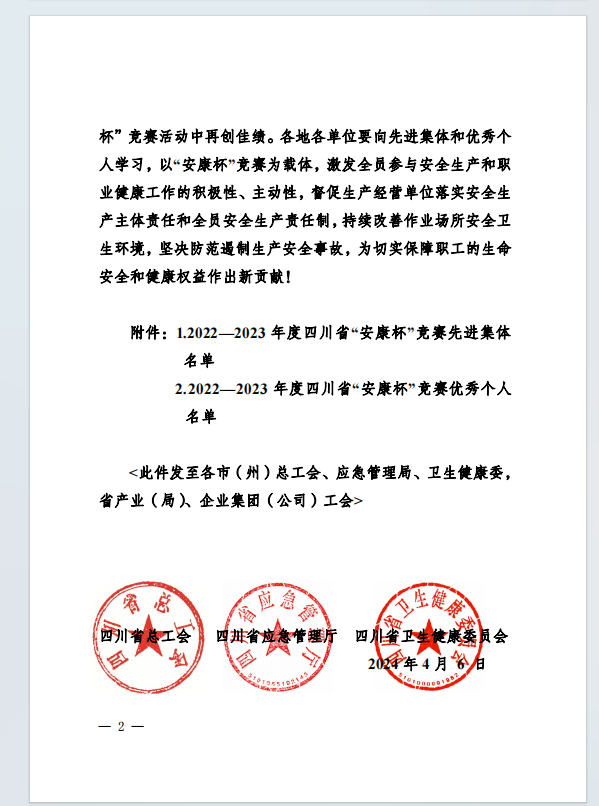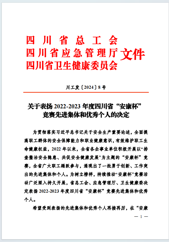 喜報!集團榮獲2022-2023年度四川省“安康杯” 競賽先進集體和優(yōu)秀個人