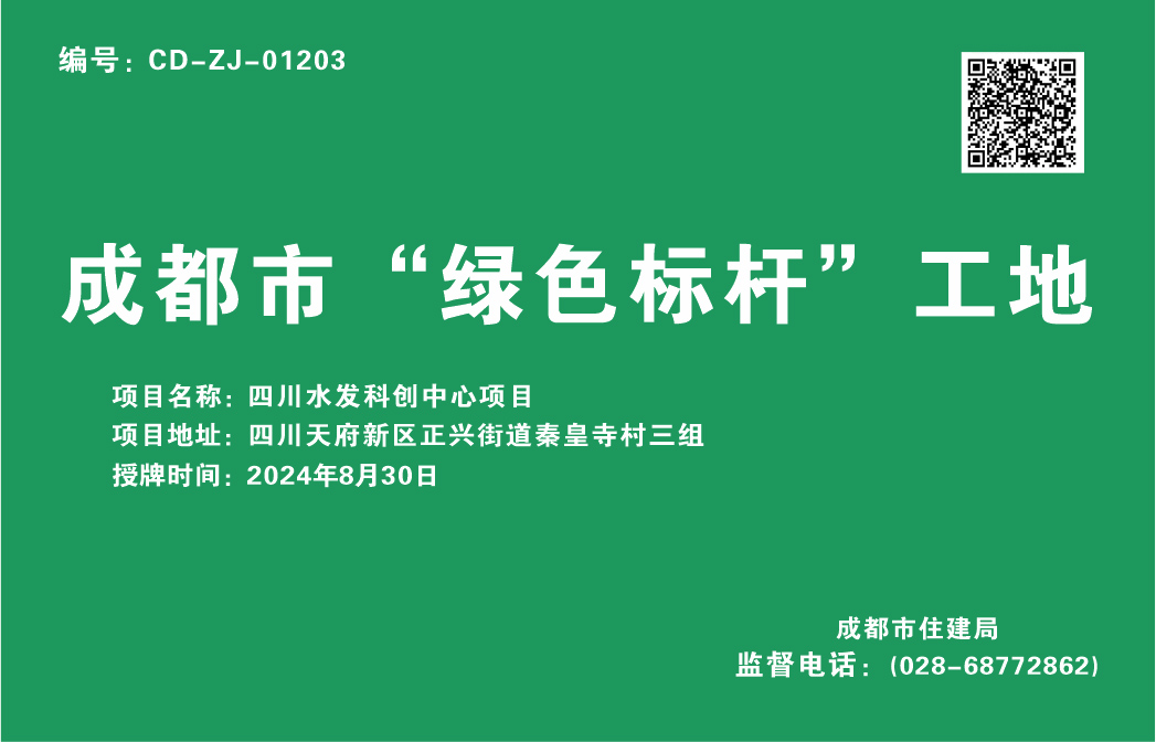 四川水發(fā)科創(chuàng)中心項目榮獲《成都市“綠色標桿”工地》