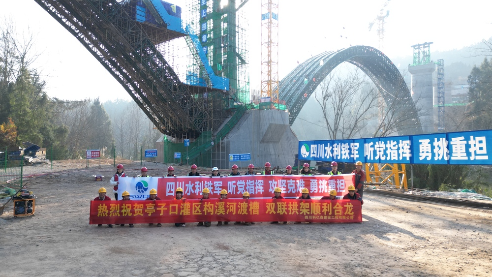 建設(shè)公司承建的亭子口一期工程第I標(biāo)段 構(gòu)溪河渡槽雙連拱懸拼鋼拱架順利合龍