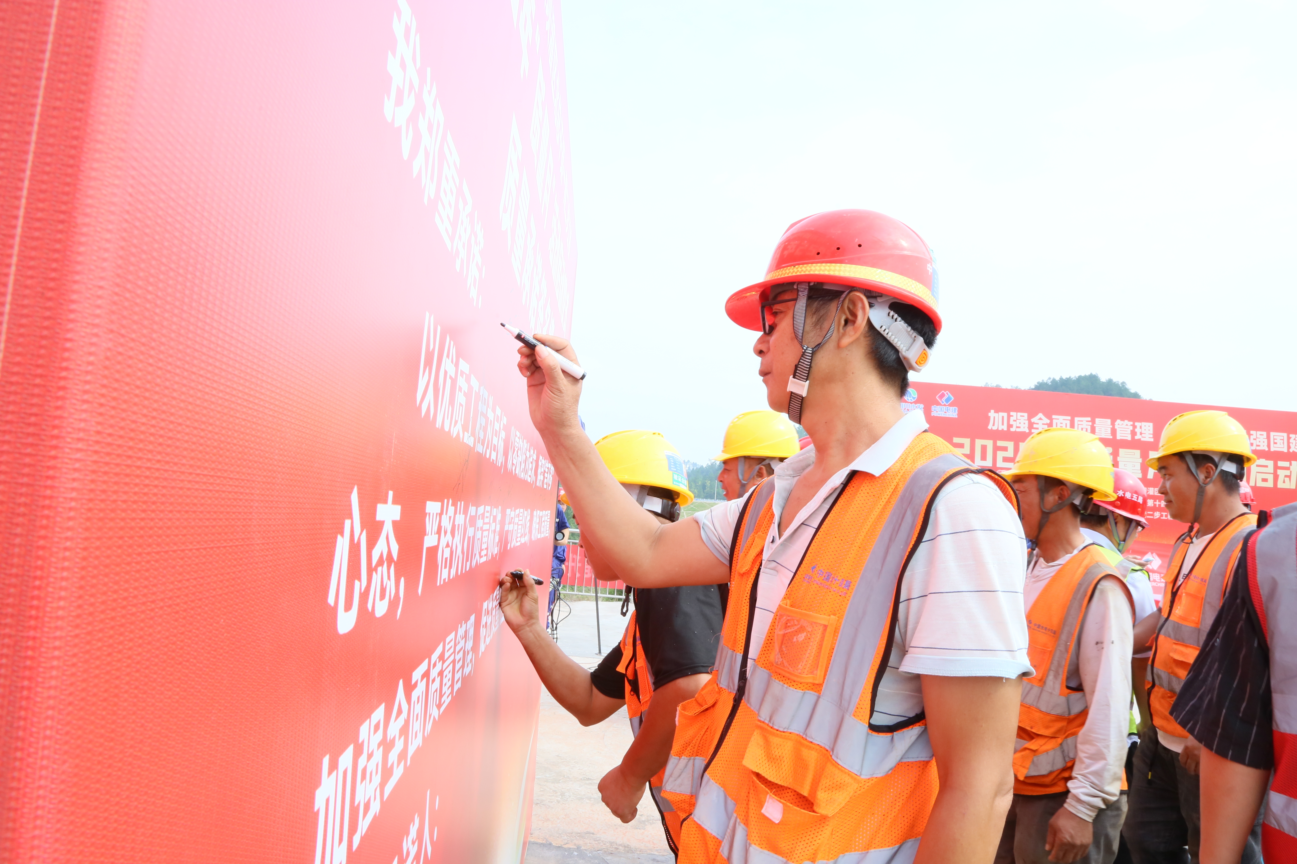 為全面貫徹黨的二十大和二十屆二中、三中全會精神,深入學(xué)習(xí)領(lǐng)會習(xí)近平總書記關(guān)于治水重要論述及對質(zhì)量工作的一系列重要論述,落實(shí)《質(zhì)量強(qiáng)國建設(shè)綱要》部署,深入推進(jìn)全民質(zhì)量行動,9月1日,向家壩灌區(qū)一期工程2025年全國“質(zhì)量月”活動啟動儀式在馬耳巖泄水洞施工平臺順利舉行。向家壩公司黨委副書記、副董事長、總經(jīng)理羅衡,設(shè)計、監(jiān)理、施工、檢測等參建各方代表以及部分勞務(wù)班組、一線作業(yè)人員出席活動。